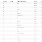 프로그래밍 언어 순위 ( 2017년 12월 ) [ 출처 : www.tiobe.com ] 1. JAVA (1991년) 객체 지향 프로그래밍 언어로서 보안성이 뛰어나며 컴파일한 코드는 다른 운영 체제에서 사용할 수 있도록 클래스(class)로 제공된다. 객체 지향 언어인 C++ 언어의 객체 지향적인 장점을 살리면서 분산 환경을 지원하며 더욱 효율적이다. [출처: 네이버 지식백과] 자바 2. C (1971년) 미국 벨 연구소의 리치(D.M. Ritichie)가 개발한 시스템 기술언어. 컴파일러나 소프트웨어 개발용 도구로도 사용된다. 특징은 프로그램을 기계어 명령에 가까운 유형으로 직접 기술할 수 있고, 언어를 간단하게 하여 풍부한 표준 자료집을 갖게 할 수 있으며, 연산자가 많고, 다른 기종에 프로그램 이식이..